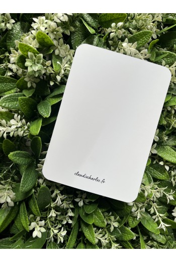 Imprimée en haute qualité sur du papier blanc 300g/m², cette carte est au format A6 (14,5 x 10,5 cm) avec coins arrondis, idéale pour une présentation élégante. Chaque création est imaginée, dessinée et soigneusement emballée dans mon atelier en Normandie.