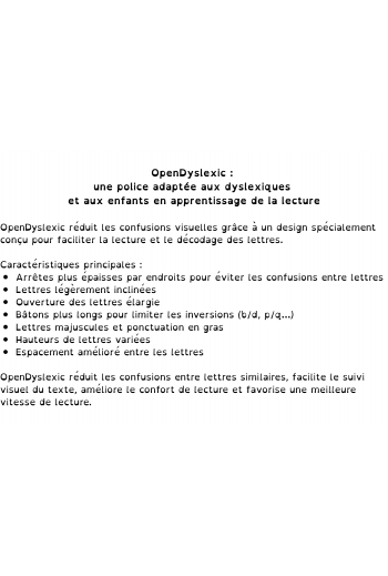 Police OpenDyslexique adaptée pour les dyslexiques et les enfants en apprentissage de la lecture.