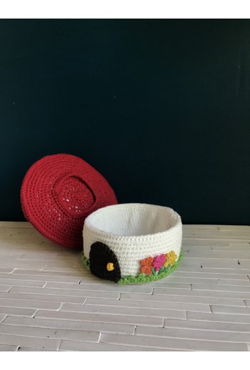Les maisons champignons sont partout sauf chez nous. Alors j’ai eu l’idée de cette boite champignon, qui peut aussi servir de porte aiguille !