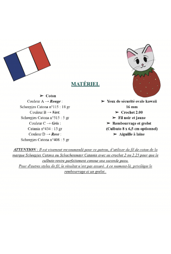 ATTENTION : Il est vivement recommandé pour ce patron, d’utiliser du fil de coton de la marque Scheepjes Catona ou Schachenmayr Catania avec un crochet 2 ou 2.25 pour que le culbuto rentre parfaitement comme une seconde peau.